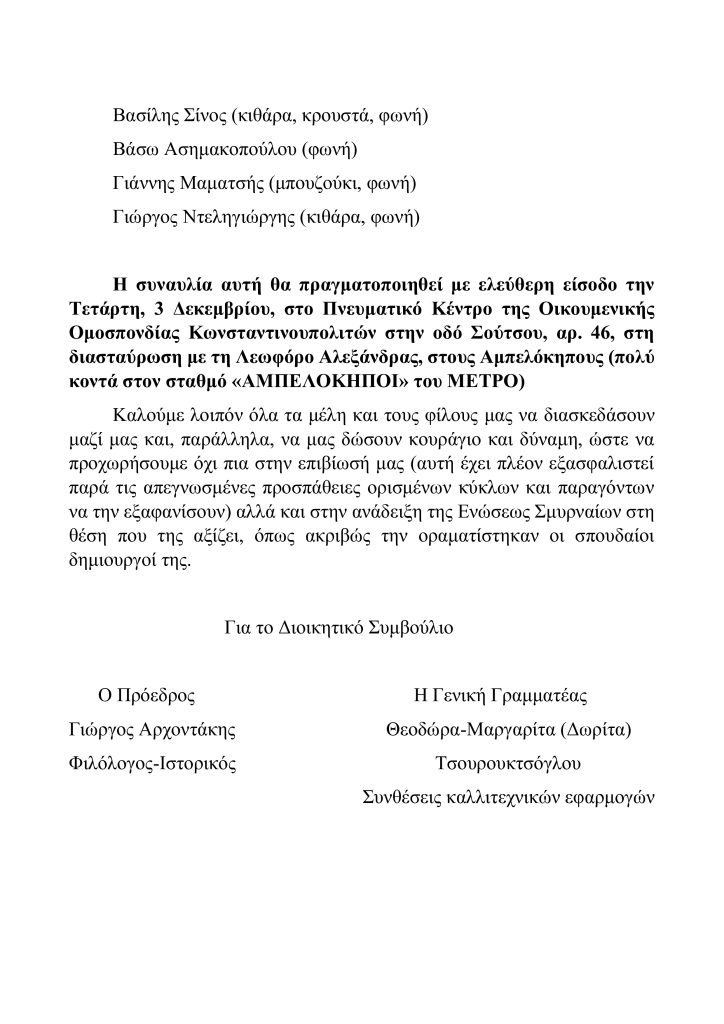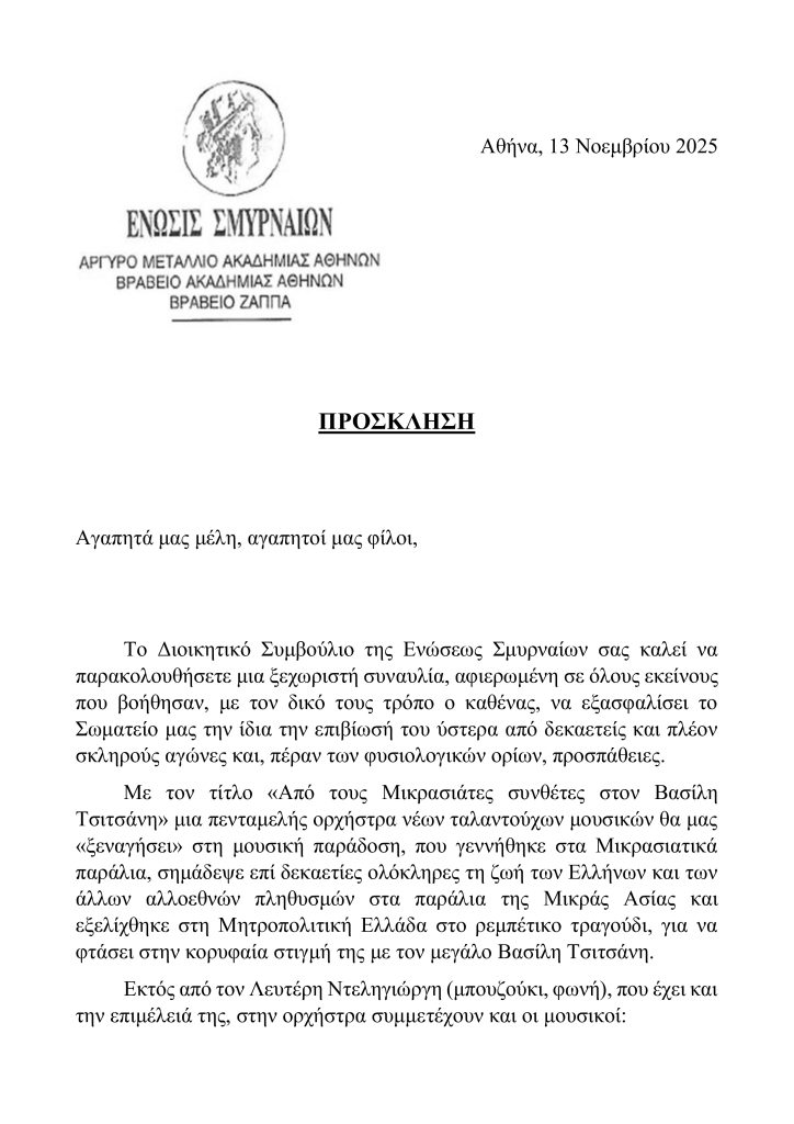 Πρόσκληση στη συναυλία με τίτλο: Από τους Μικρασιάτες συνθέτες στον Βασίλη Τσιτσάνη