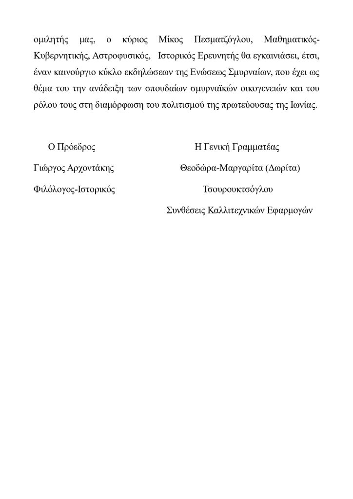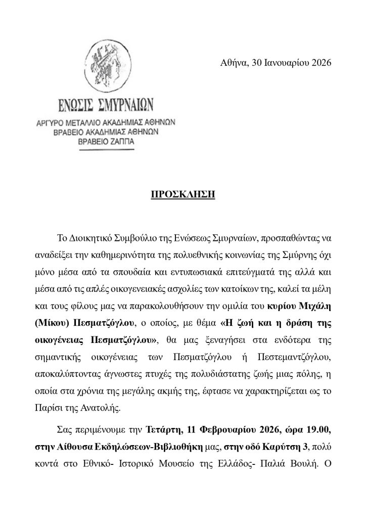 Πρόσκληση στην εκδήλωση «Η ζωή και η δράση της οικογένειας Πεσματζόγλου»