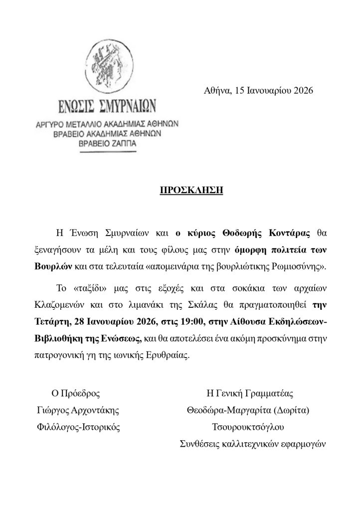• Πρόσκληση στη μουσικοφιλολογική εκδήλωση με θέμα «Η ψαλτική παράδοση της Σμύρνης»